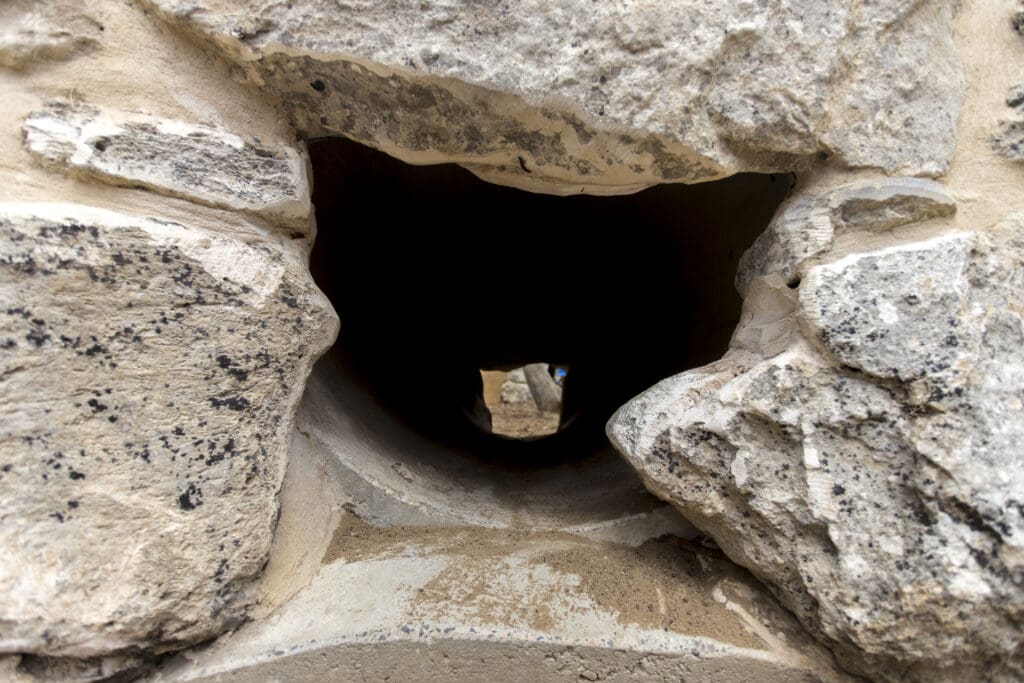 The design balanced the clients request for it to act as an educational tool, with the need expressed by children to learn and explore in an interactive way. Consultation with palaeontologists ensured the design of elements reflected the information provided on cave tours. Rammed earth walls constructed with pigmented layers (representing sedimentary deposits) bordering sandpits where replica fossils are buried. Inclusion of locally reclaimed materials and natural timbers was a design priority with 90% of materials in the construction salvaged from the site or within a 5km radius. Specifications were made to ensure wooden elements with a high resilience and long life span were utilised, ensuring longevity.